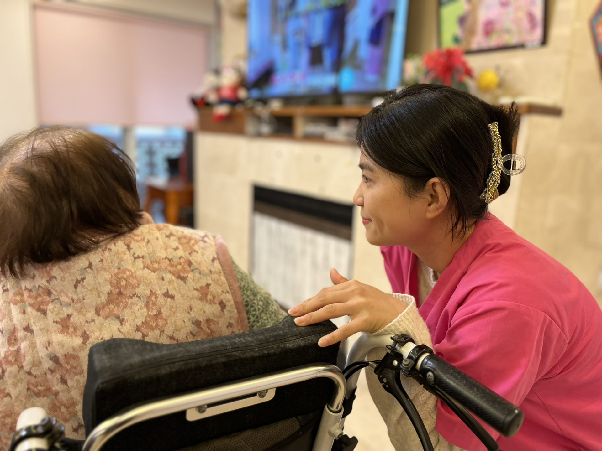 介護の仕事はこのようなコミュニケーションの場面が多くて、日常のご利用者様との会話も楽しいし、続けていきたいと思っています。