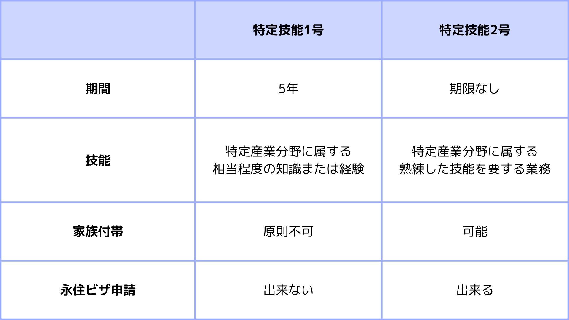 特定技能1号と2号の違い