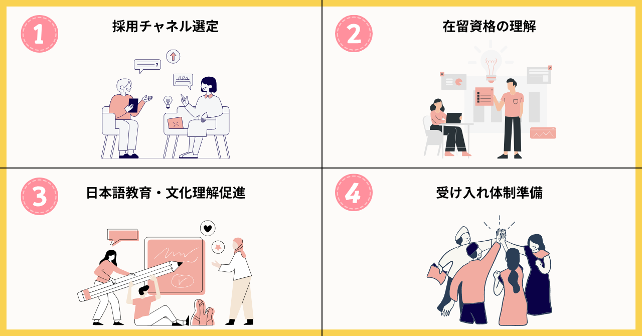 「介護外国人雇用」「介護外国人採用」を成功させるためには、いくつかの重要なポイントがあります。