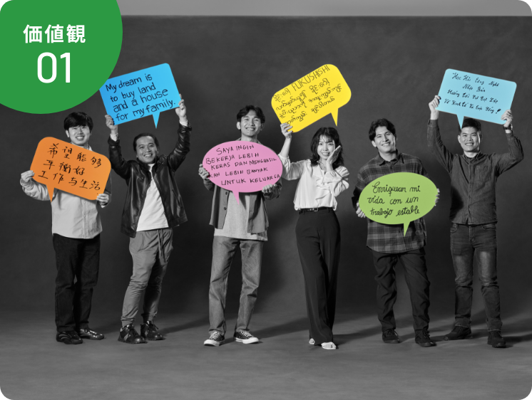 わたしたちは、常にお客様の課題解決を考え、外国人人材の幸せを最大化するために、できることはなんでもしたいと思っています。